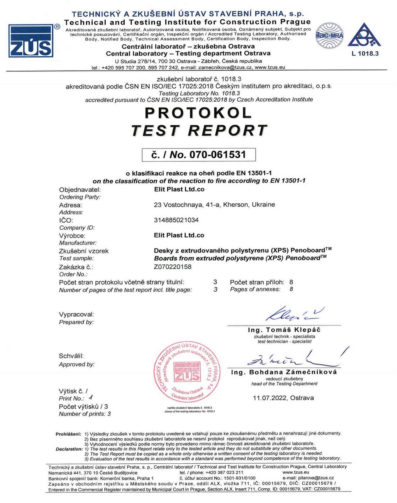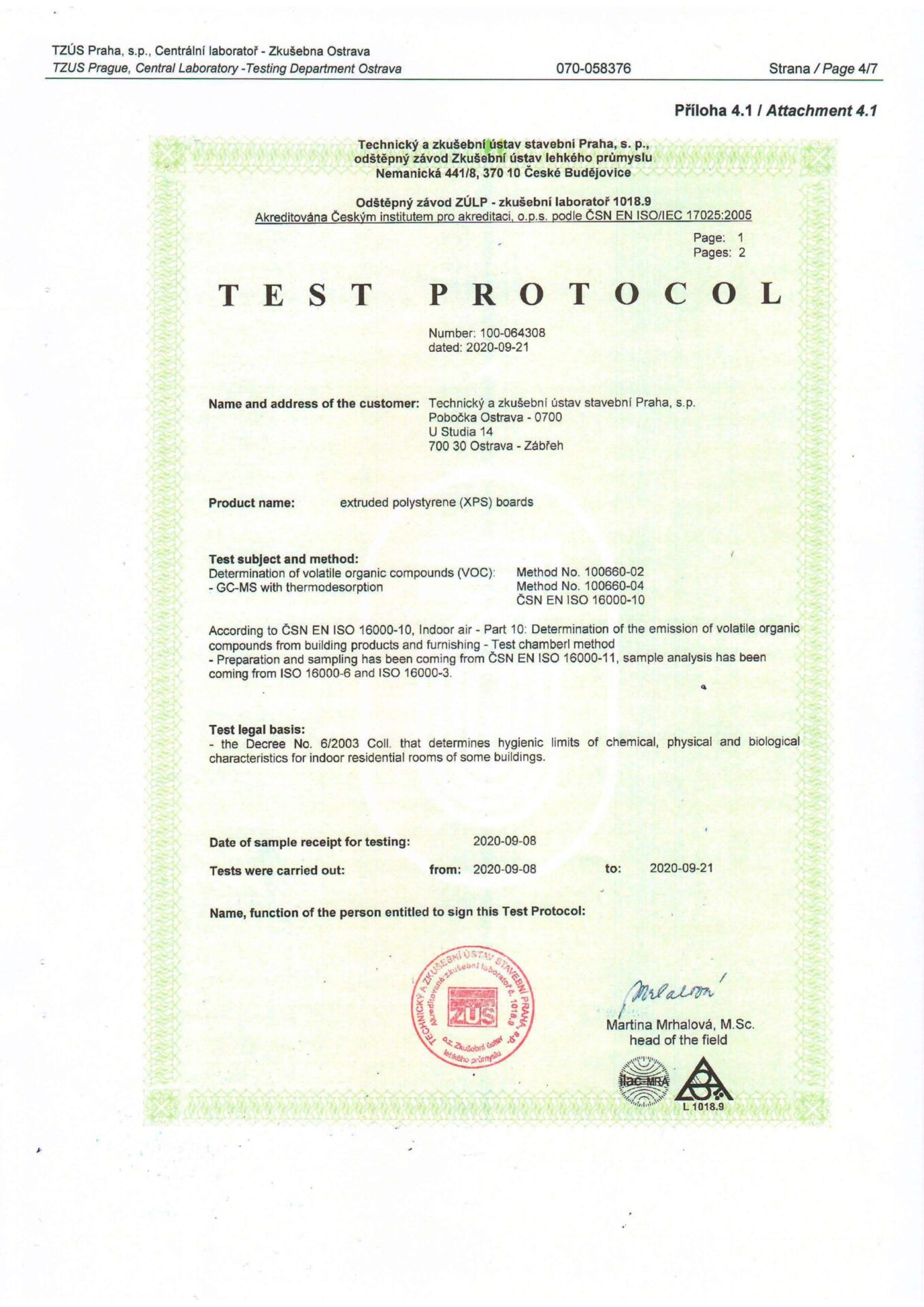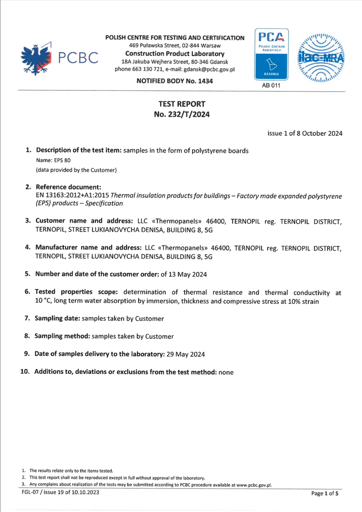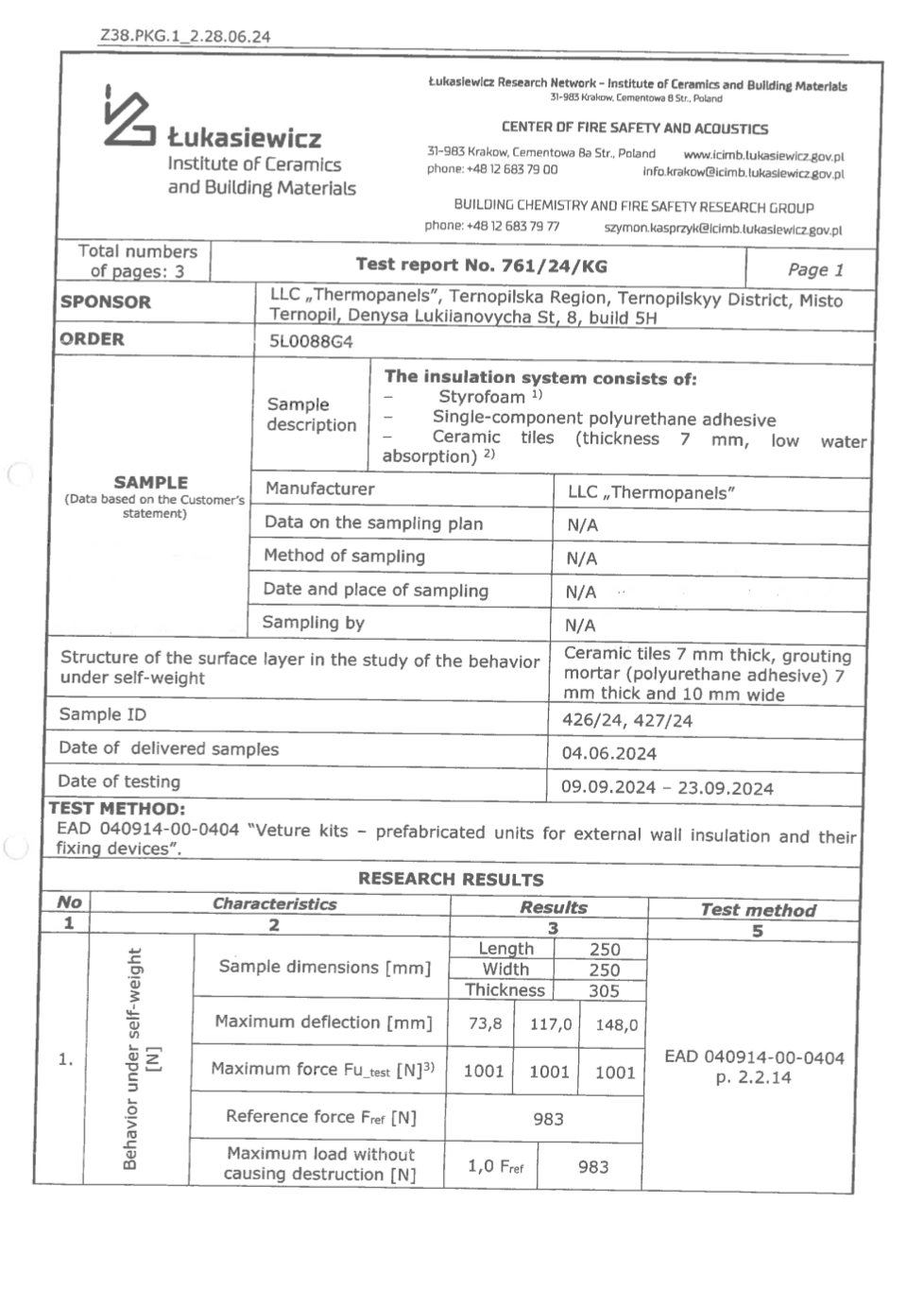 Underneath are presented the documents, received by the Royal Facade company as a result of the certification process in research laboratories
