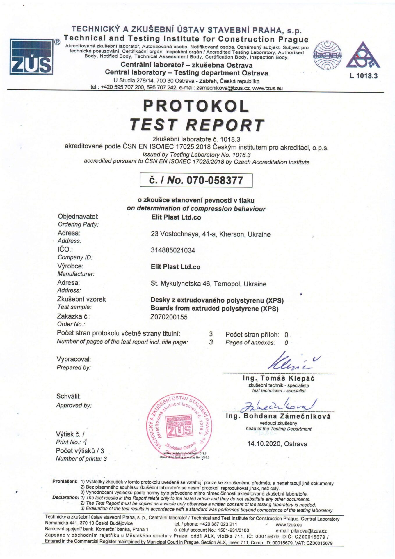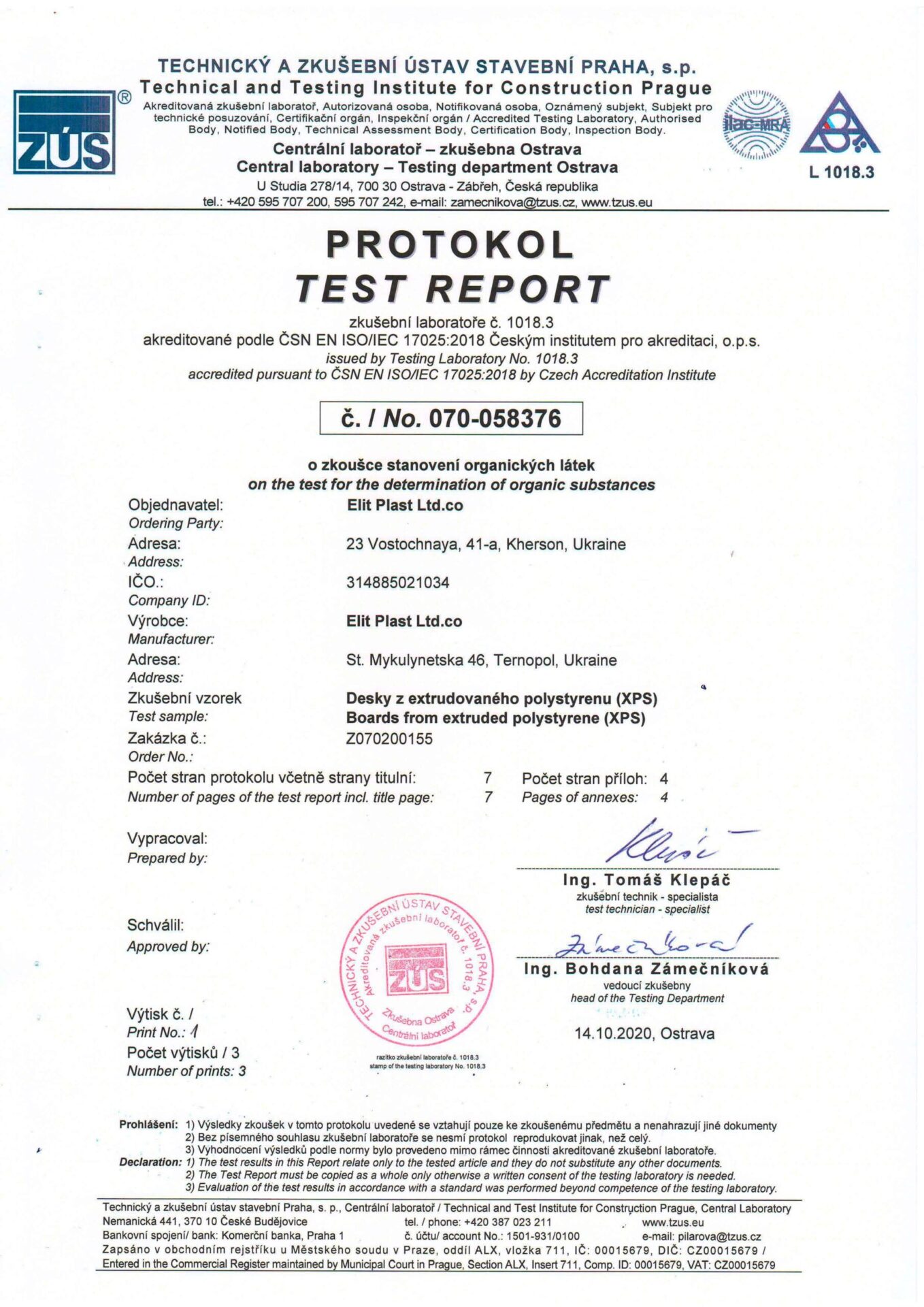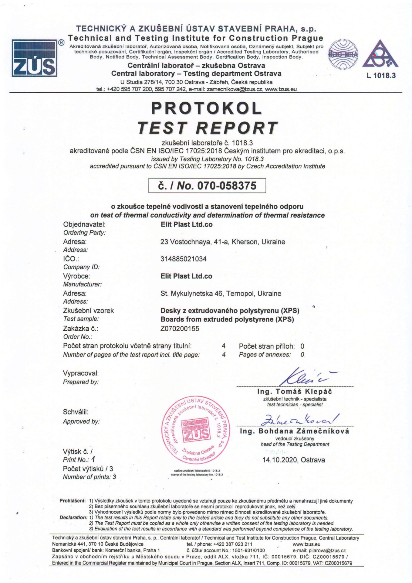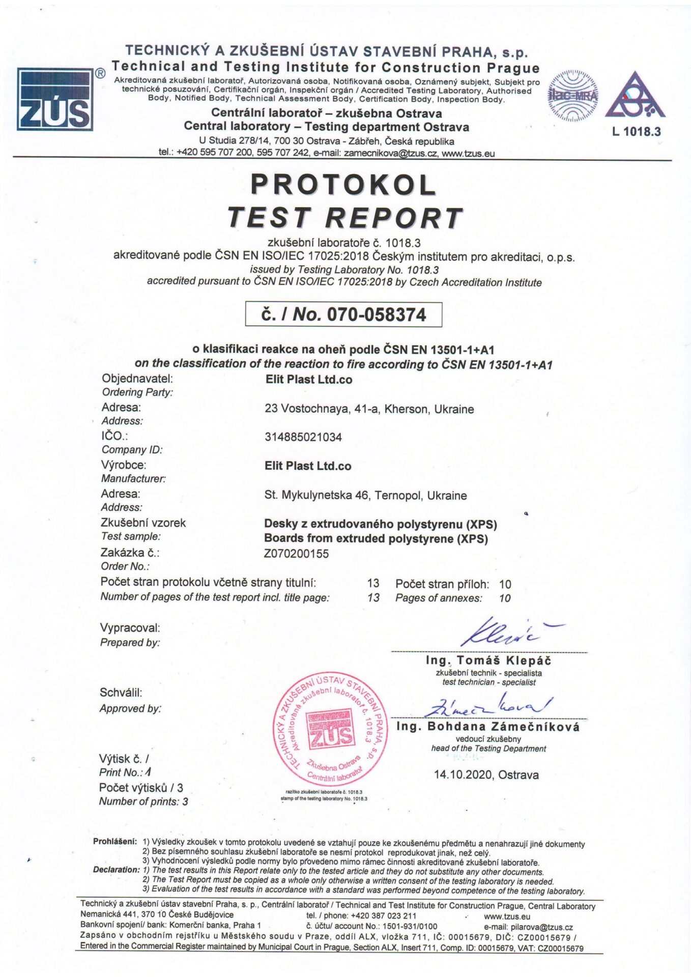 Underneath are presented the documents, received by the Royal Facade company as a result of the certification process in research laboratories