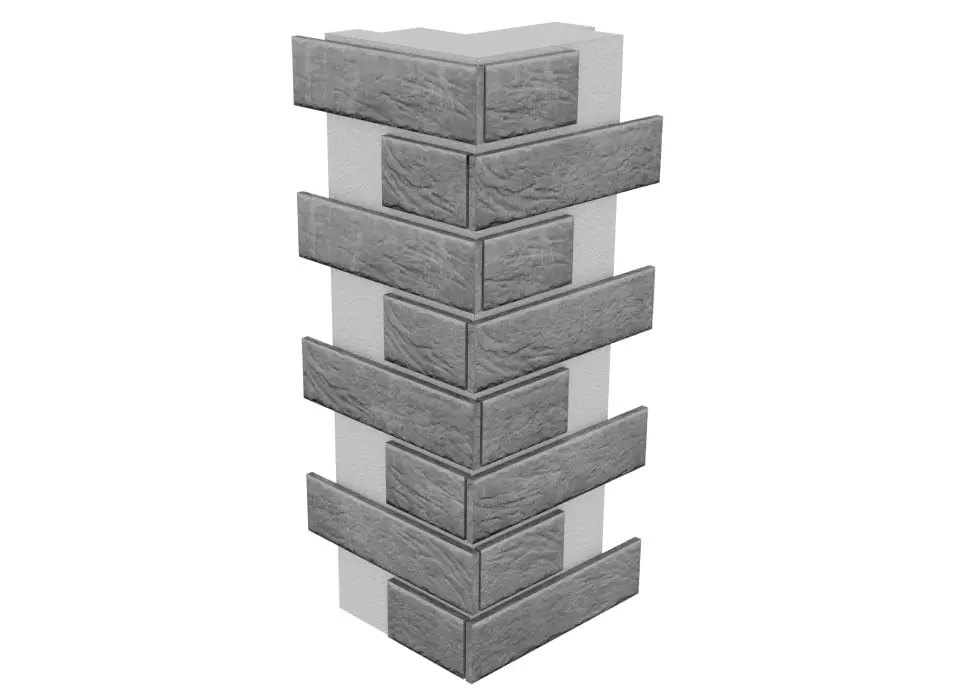 Úhlový termopanel různých formátů (8 celých dlažic a 8 polovičních, které jsou spojeny ve tvaru úhlu se zkosením dlažice pod 45 nebo 90 stupňů, lisovány do izolace s čtvrtkovými zámky po celém obvodu nebo pouze horizontálně, s plným lepením dlažice nebo s částečně vyčnívajícími částmi dlažice nad izolaci).