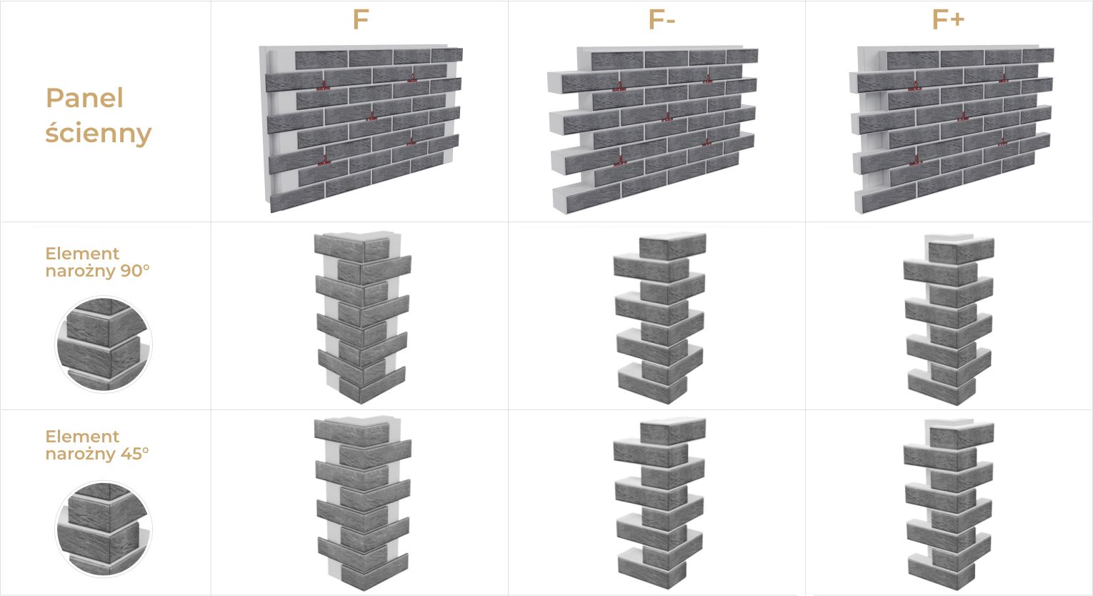 Klinkierowe panele termiczne ™ Royal Facade wyróżniają trzy rodzaje – typy F, F- oraz F+. rozważmy każdy z osobna.