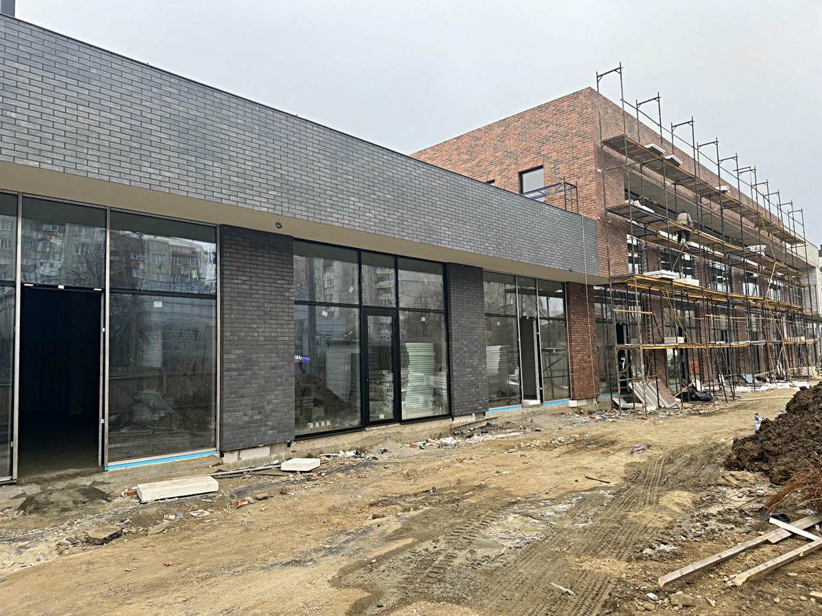 Construcția și izolarea fațadei unei clădiri comerciale și de birouri în Ivano-Frankivsk, strada Ivasyuka (vizavi de casa 52). Pentru izolare s-au folosit panouri termice Royal Facade clinker cu plăci Paradyz VIANO ANTRACITE ELEWACJA și Cerrad LOFT BRICK CHILI.